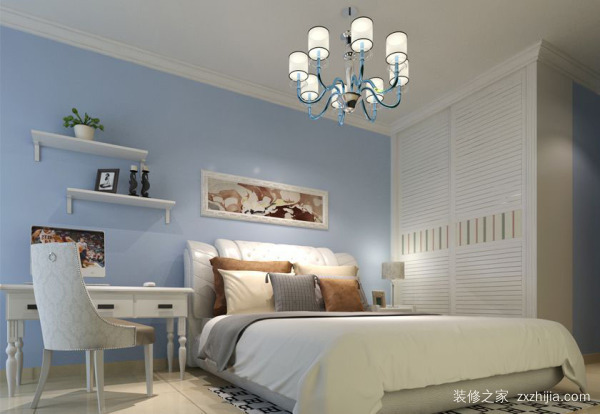 2.床边有一张小沙发,沙发的颜色与地上的蓝色相呼应。当你回到房间还没洗的时候,你可以在沙发上休息一下,以免弄脏床上的灰尘。早上起床,打开窗帘,让阳光进来,享受阳光的温暖。