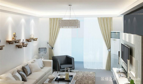 图为大厅设计。由于面积有限,业主在装修时采用浅色。白色的墙壁和米色的沙发搭配浅黄色的窗帘使整个大厅看起来非常明亮。玻璃茶几下的浅灰色地毯让人感到温暖。值得提醒的是,当我们购买小家庭家具时,我们应该尽量选择更短的家具。一方面,它可以很容易地放置,另一方面,它更和谐。