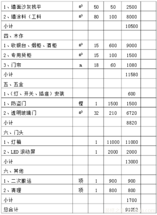对于那些有装修经验的朋友来说,预算资金很容易超支,所以需要制定详细的预算表,所以烟酒店装修多少钱??烟酒店装修预算是多少?以下装修公司装修网小编将为您带来烟酒店装修预算表,希望对您有所帮助。