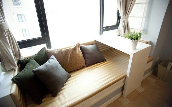 2. 凸窗装饰设计,台面防晒防水,但由于该区域往往阳光明媚,所以在选择台面材料时,应考虑防晒防水功能,以有效避免变色、变形等情况,如大理石、桑拿板很好,防水防晒好,搭配一些垫子和枕头,美观。