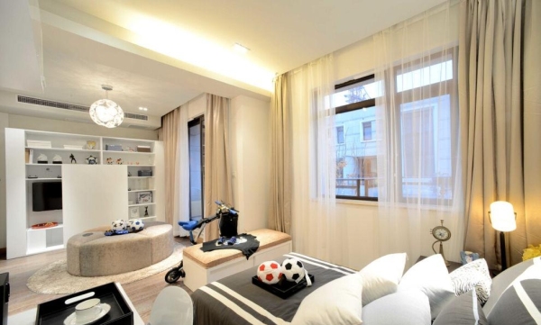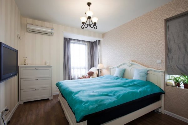 3、 选择环保家具:在购买家居用具时,尽量选择环保材料,营造绿色卧室氛围,同时选择灯具,必须符合整体装饰风格,如果空间不大,建议不要购买吊灯占用空间大的家具,而应选择购买玻璃、不锈钢等材料。